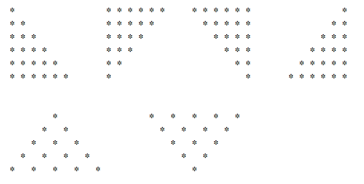 Viết script hiển thị trên màn hình dấu * như kết quả như bên dưới (gợi ý sử dụng vòng lặp lồng nhau: for/ while/ do while):